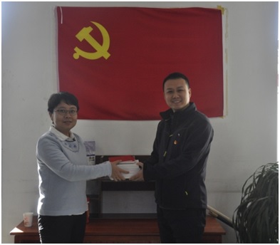 副經(jīng)理王珺向北京鑫中招標代理有限公司黨支部贈送學習資料。