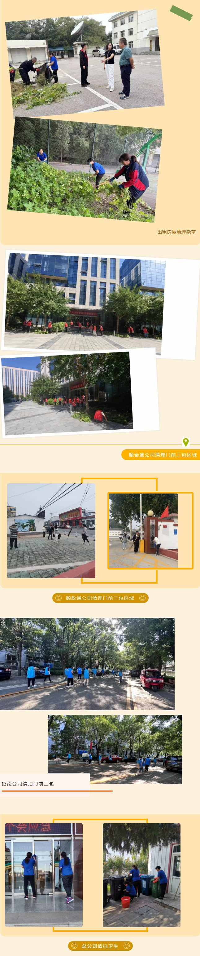 為迎接中秋、國慶節(jié)到來,助推全區(qū)文明城區(qū)建設(shè),營造良好的節(jié)日氛圍,全面提升辦公場所環(huán)境衛(wèi)生質(zhì)量,創(chuàng)造舒適、優(yōu)美、整潔的辦公環(huán)境,順義建投總公司及各子公司對各辦公區(qū)域及院落場所開展節(jié)前環(huán)境衛(wèi)生大掃除活動。