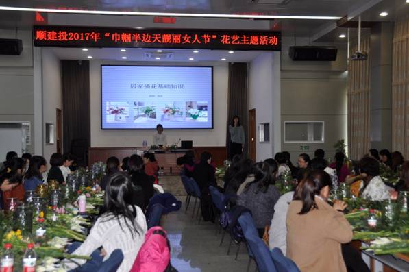 2017年3月6日,順建投工會圍繞提高女職工藝術(shù)修養(yǎng),提升自身素質(zhì),做一名智慧女性、快樂女人的目標(biāo),在三八節(jié)來臨之際舉辦花藝主題活動(dòng),全公司共90多名女職工參加。