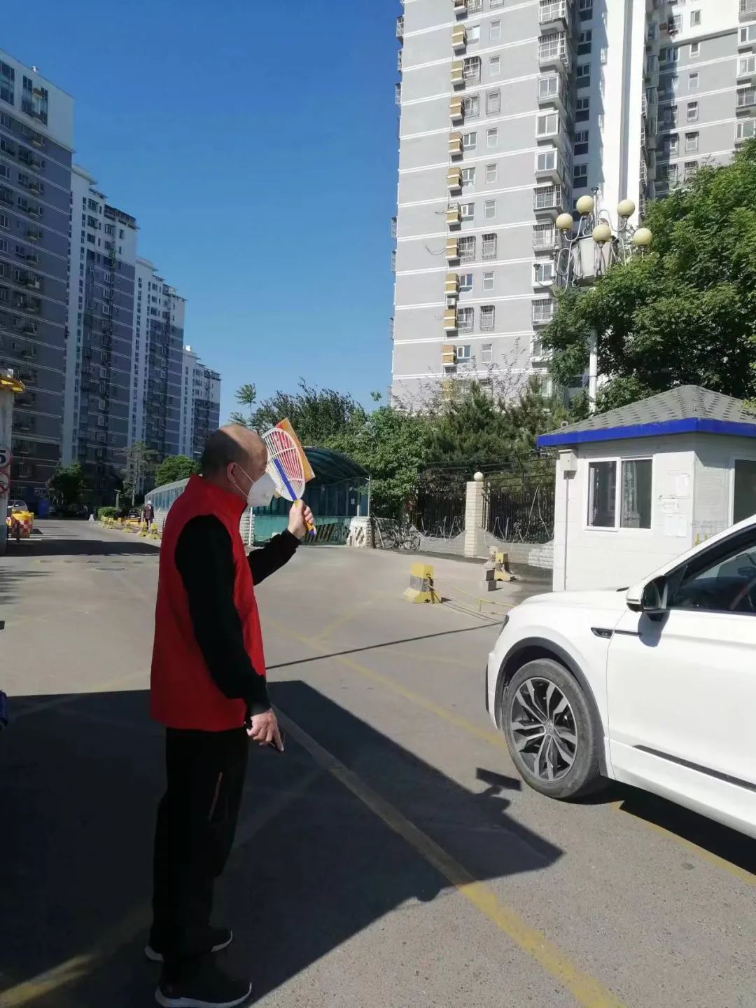 順義建投黨委副書記胡代安帶頭響應(yīng),下沉社區(qū),按照社區(qū)安排,在社區(qū)門口負責人員掃碼登記工作。