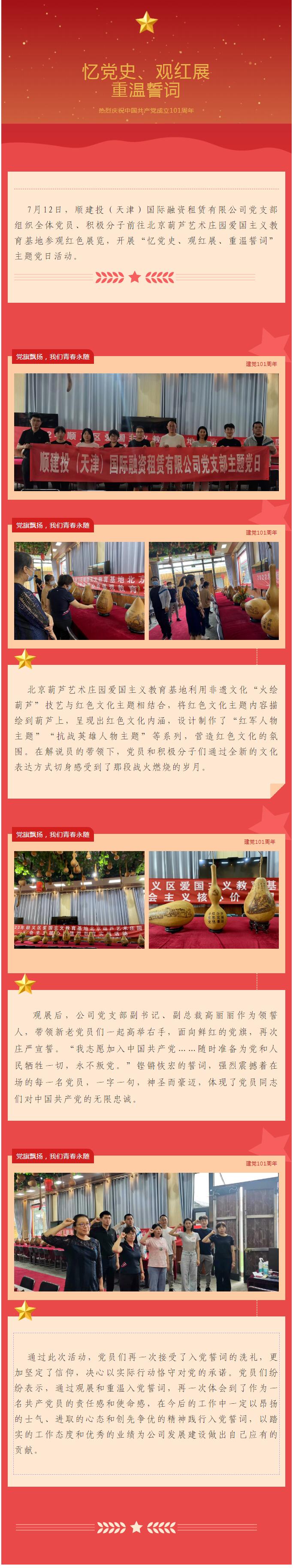 慶祝建黨101周年系列報道|順建投(天津)國際融資租賃有限公司黨支部組織開展“憶黨史、觀紅展、重溫誓詞”主題黨日活動