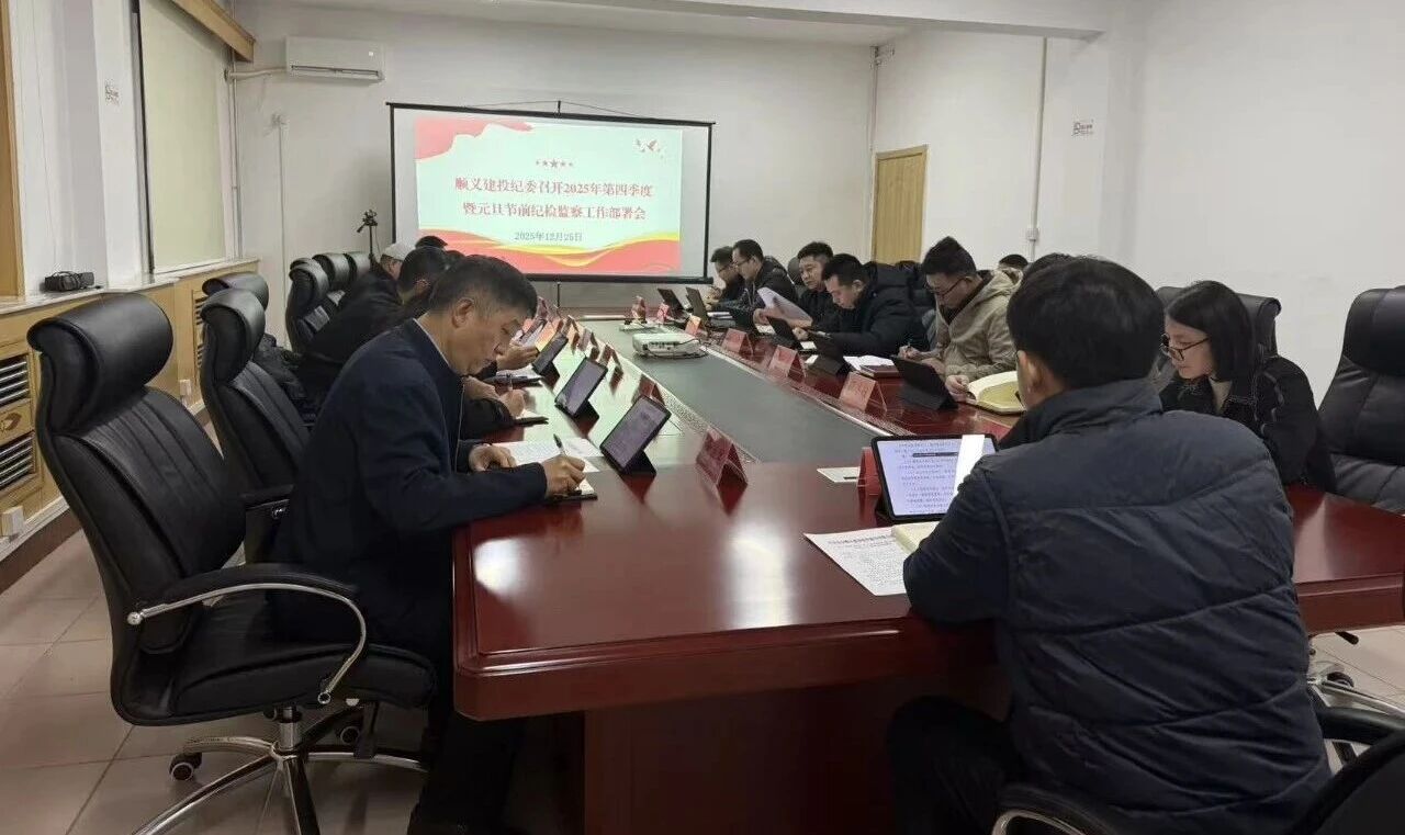 12月25日,順義建投紀(jì)委召開(kāi)2025年第四季度紀(jì)檢監(jiān)察暨元旦節(jié)前工作部署會(huì)。黨委委員、紀(jì)委書(shū)記魏瓊,總公司紀(jì)委委員、紀(jì)檢部全體人員、各子公司紀(jì)檢委員共計(jì)16人參會(huì)。