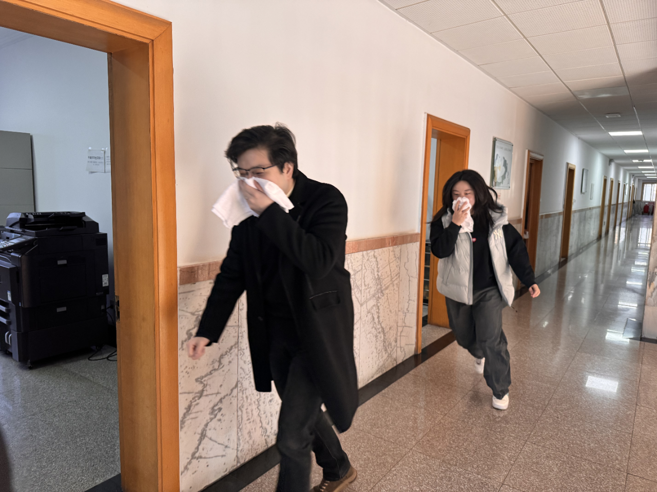 應(yīng)急疏散在辦公場(chǎng)所消防應(yīng)急疏散演練環(huán)節(jié),隨著刺耳的火警鈴聲響起,各部門、各小組按照《應(yīng)急逃生預(yù)案》,用濕毛巾捂住口鼻,聽(tīng)從指揮、從各樓層辦公場(chǎng)所迅速有序疏散到廣場(chǎng)開(kāi)闊地帶。