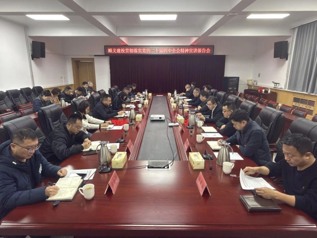 12月15日,順義建投召開黨的二十屆四中全會(huì)精神專題宣講報(bào)告會(huì),深入學(xué)習(xí)領(lǐng)會(huì)全會(huì)精神,明確使命擔(dān)當(dāng)。黨委書記、董事長(zhǎng)宋學(xué)農(nóng)作專題宣講,總公司班子成員、各部室中層干部在主會(huì)場(chǎng)參加會(huì)議,子公司班子成員、梧桐人才、碩博人才在視頻分會(huì)場(chǎng)參加會(huì)議。
