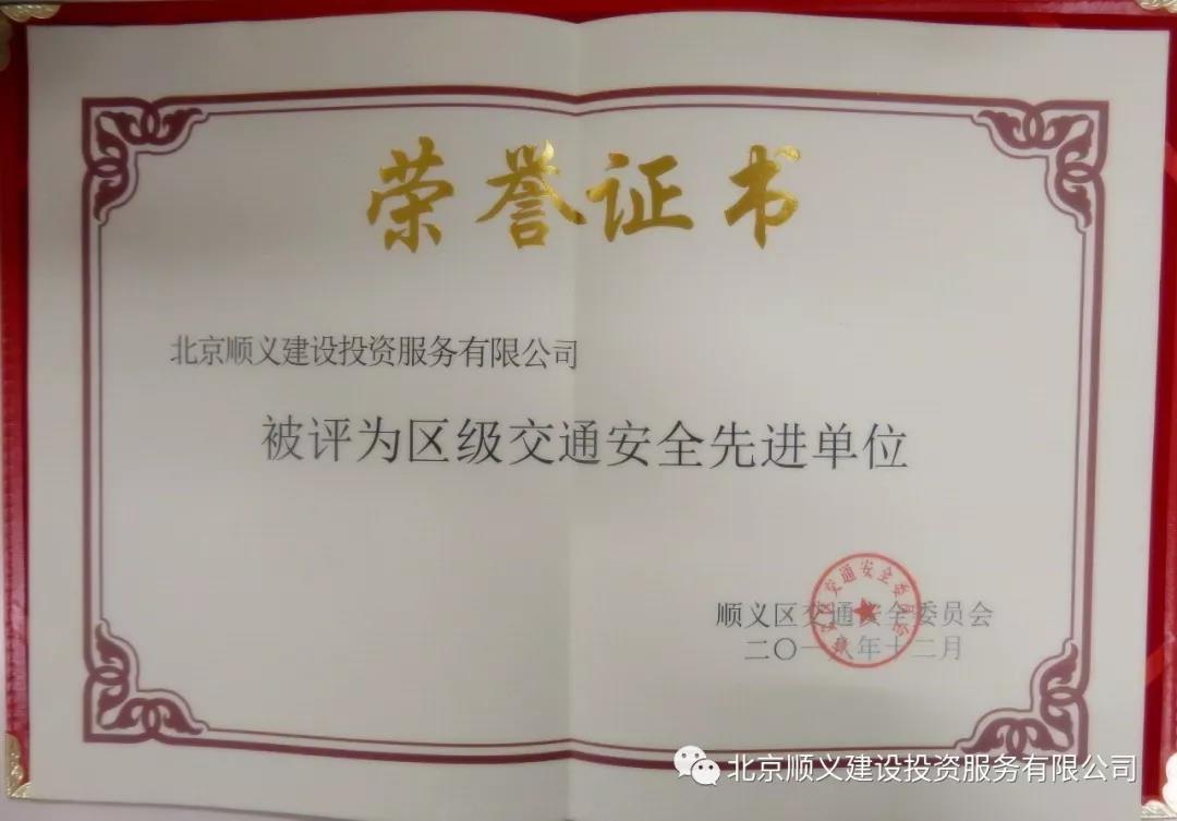 順義建投被評(píng)為2018年度區(qū)級(jí)交通安全先進(jìn)單位