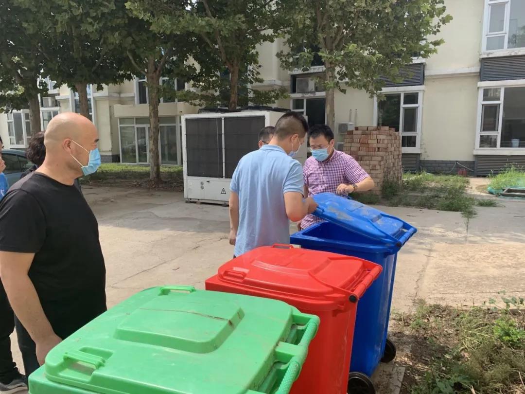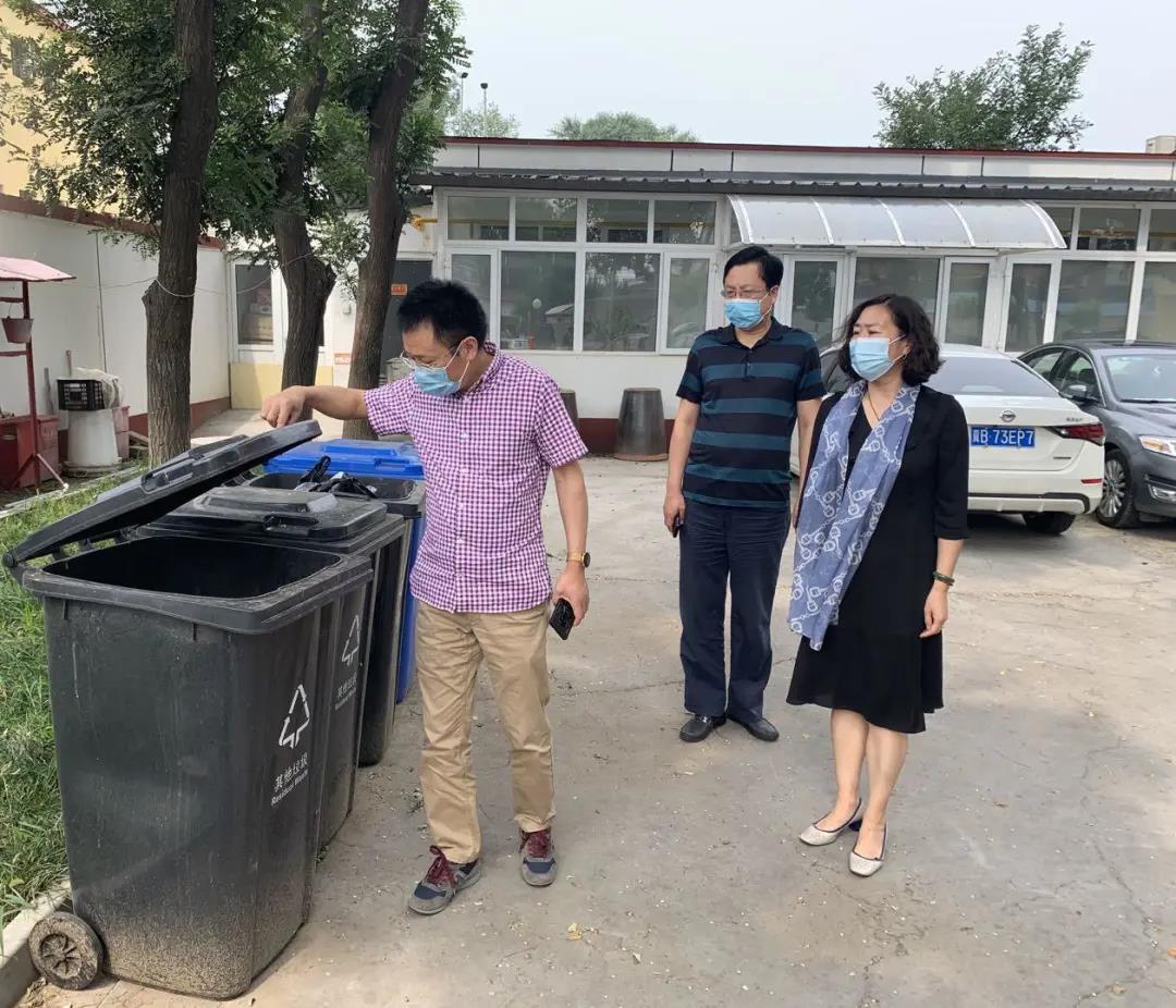 檢查組一行實地查看各單位垃圾分類設(shè)施配備、垃圾分類投放和周邊衛(wèi)生情況,檢查了相關(guān)的臺賬資料,并組織部分人員進行垃圾分類基本常識測試。