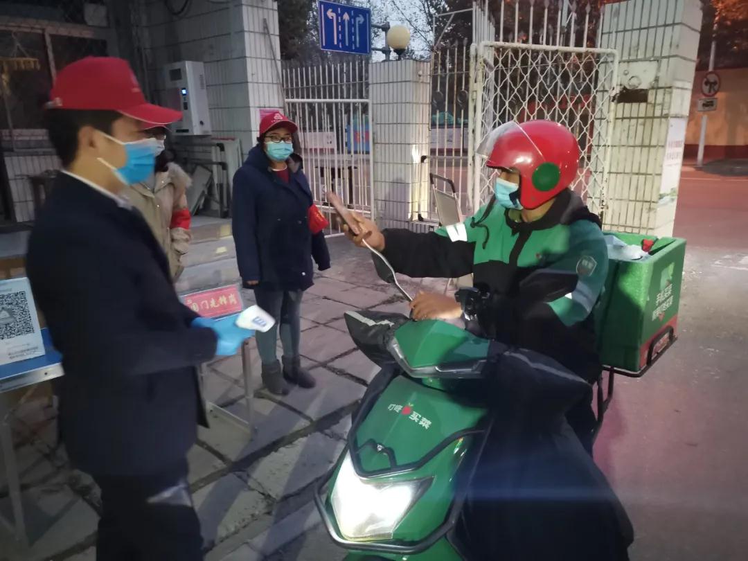 順義建投黨員志愿者在燕京社區(qū)一社區(qū)測(cè)溫